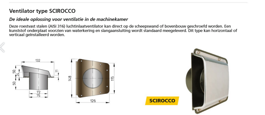 Vetus RVS Boot luchtschelp SCIROCCO inclusief kunststof onderplaat. Een hoogglans gepolijste roestvast stalen luchtschelp die direct op te schroeven is. Inclusief onderplaat met waterkering en 76 mm slangaansluiting.