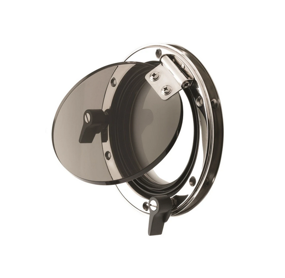 De Vetus RVS 316 Patrijspoort A2 is van roestvast staal (AISI 316), heeft een 8 mm dik “dark smoke” acrylaat venster en is voorzien van een roestvast stalen contraflens.