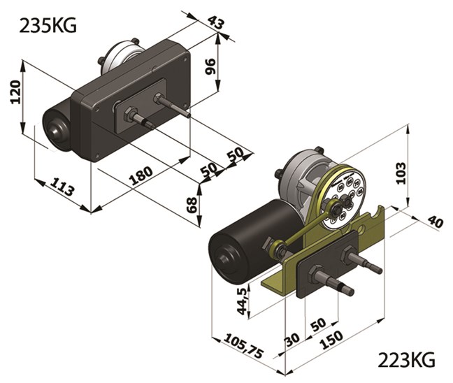 Deze zelfparkerende ruitenwissers zijn geschikt voor glasmontage. Alle bewegende delen van de 235KG zijn beschermd door een aluminium huis. Voor de 223KG is een witte of zwarte afdekkap verkrijgbaar. Deze motoren kunnen armen tot 450 mm lengte en bladen tot 500 mm aandrijven. Omdat deze wissers een afwijkende aandrijfas hebben en vanwege de montage in het glas, worden langere armen en bladen afgeraden. De wishoek van deze wissers zijn instelbaar van 40° tot 90°, in stappen van 5°. De motoren zijn standaard massavrij uitgevoerd. De 235KG en 223KG zijn leverbaar voor een glasdikte van 17 mm of minder.